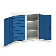 - Mit stabilem, vollverschweißtem Stahlblechgehäuse, zwei verstärkten, hohen Türen, einem höheneinstellbaren Fachboden aus verzinktem Stahlblech (Tragfähigkeit: 75 kg) und 1x 100 mm, 1x 175 mm Schubladen mit Vollauszug (Tragfähigkeit: 75 kg)