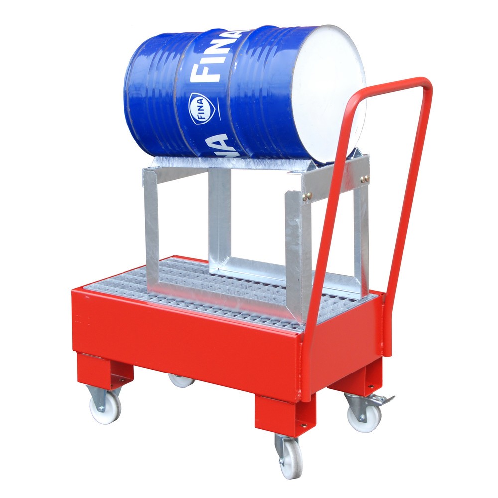 Bauer® Auffangwanne aus Stahl, verfahrbar, inkl. Fassbock, 1x 60 l liegend, Auffangvolumen 61 l, feuerrot