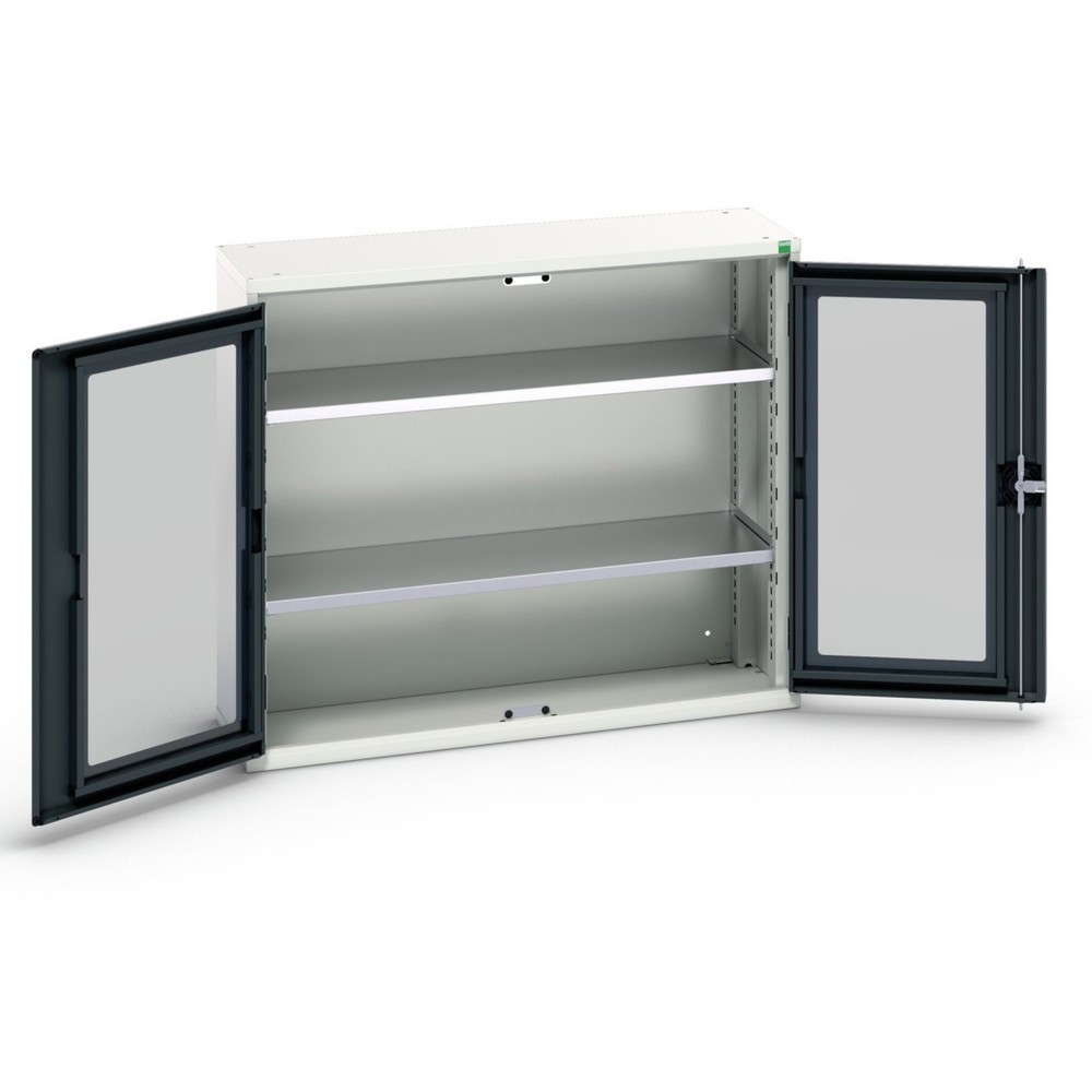 Der bott verso Beistellschrank mit Sichtfenster kombiniert maximale Stabilität mit perfekter Übersicht. Das vollverschweißte Stahlblechgehäuse sorgt für höchste Belastbarkeit und lange Lebensdauer. Durch die große Tür mit Sichtfenster behalten Sie jederzeit den Überblick über den Inhalt. 2 höheneinstellbare Fachböden ermöglichen eine flexible Nutzung der Innenräume, angepasst an Ihre individuellen Anforderungen.