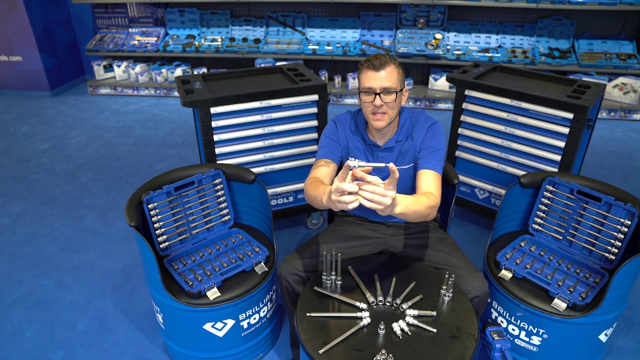 Der 26-teilige BRILLIANT TOOLS Steckschlüssel-Satz BT022026 ist nach DIN gefertigt. Das gesamte Set hat einen 1/2" (12,5 mm) Innenvierkant-Antrieb. Es wird in einem praktischen Koffer mit Metallscharnieren und Verschlüssen mit klemmgesicherten Werkzeugen geliefert. Die Beschriftung im Koffer ermöglicht ein rasches Finden der passenden Einsätze. Dieser Satz beinhaltet diverse Längen um an jede Schraube gelangen zu können.