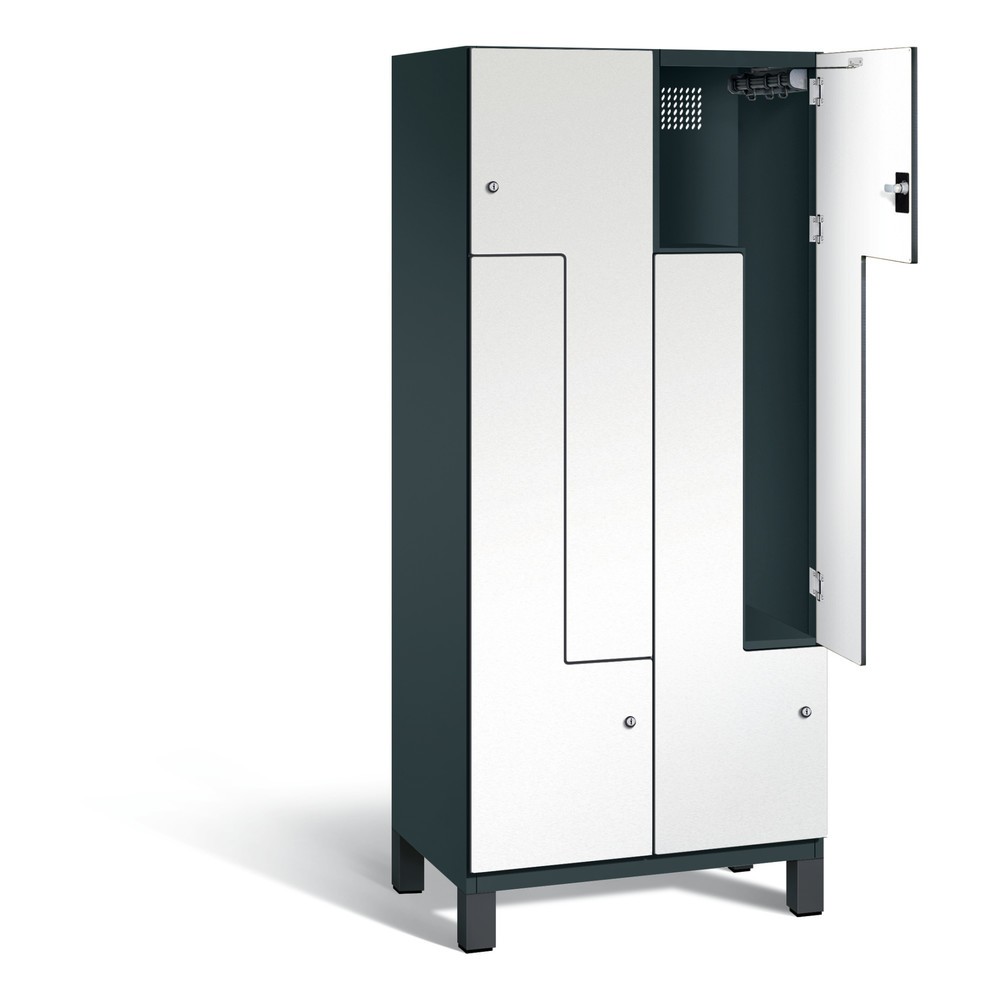 C+P Z-Spind Cambio, 2 Abteile, Abteilbreite 400 mm, HxBxT 1980x800x525 mm, RAL 7016 Anthrazitgrau, Dekor Weiß, Füße