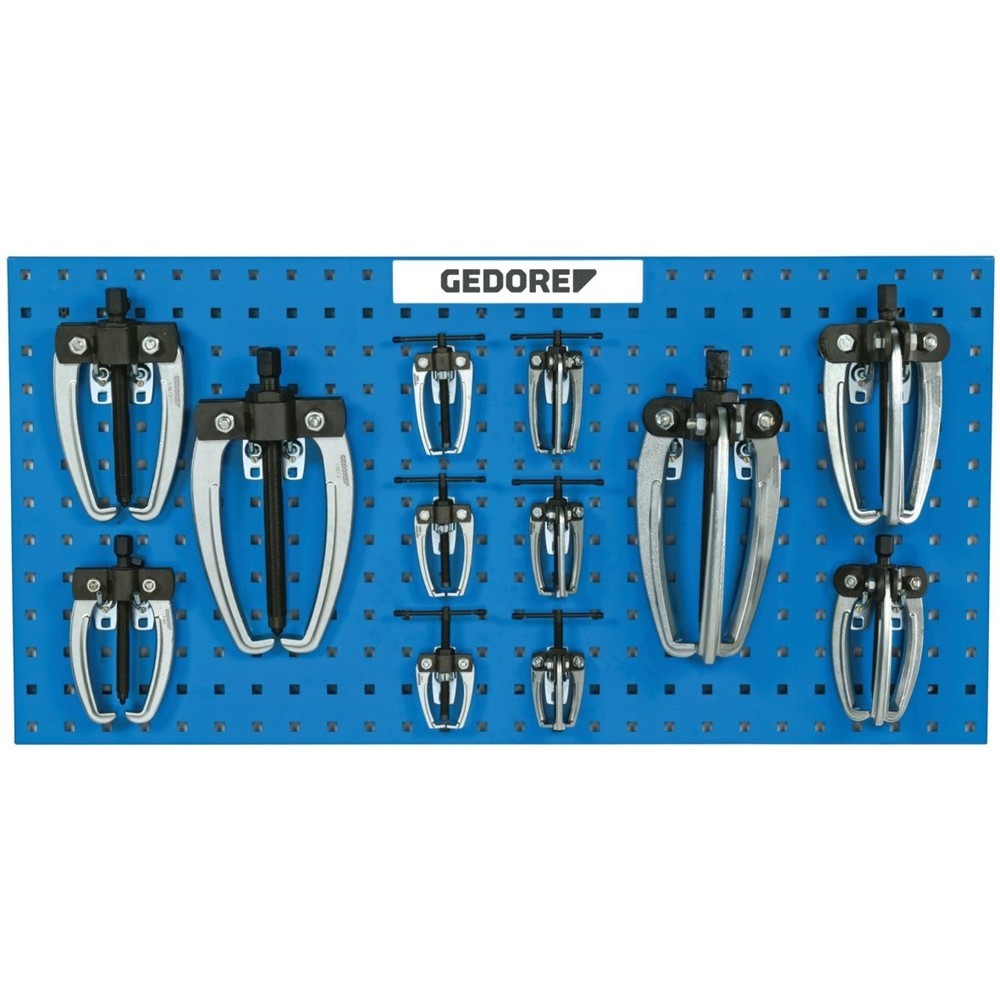 - Auf dieser Lochwand finden 12 Abzieher der Serien 1.18 und 1.19 Platz, Für Spannweiten bis zu Ø 200 mm und Spanntiefen bis zu 200 mm, Lochwandtafel inklusive