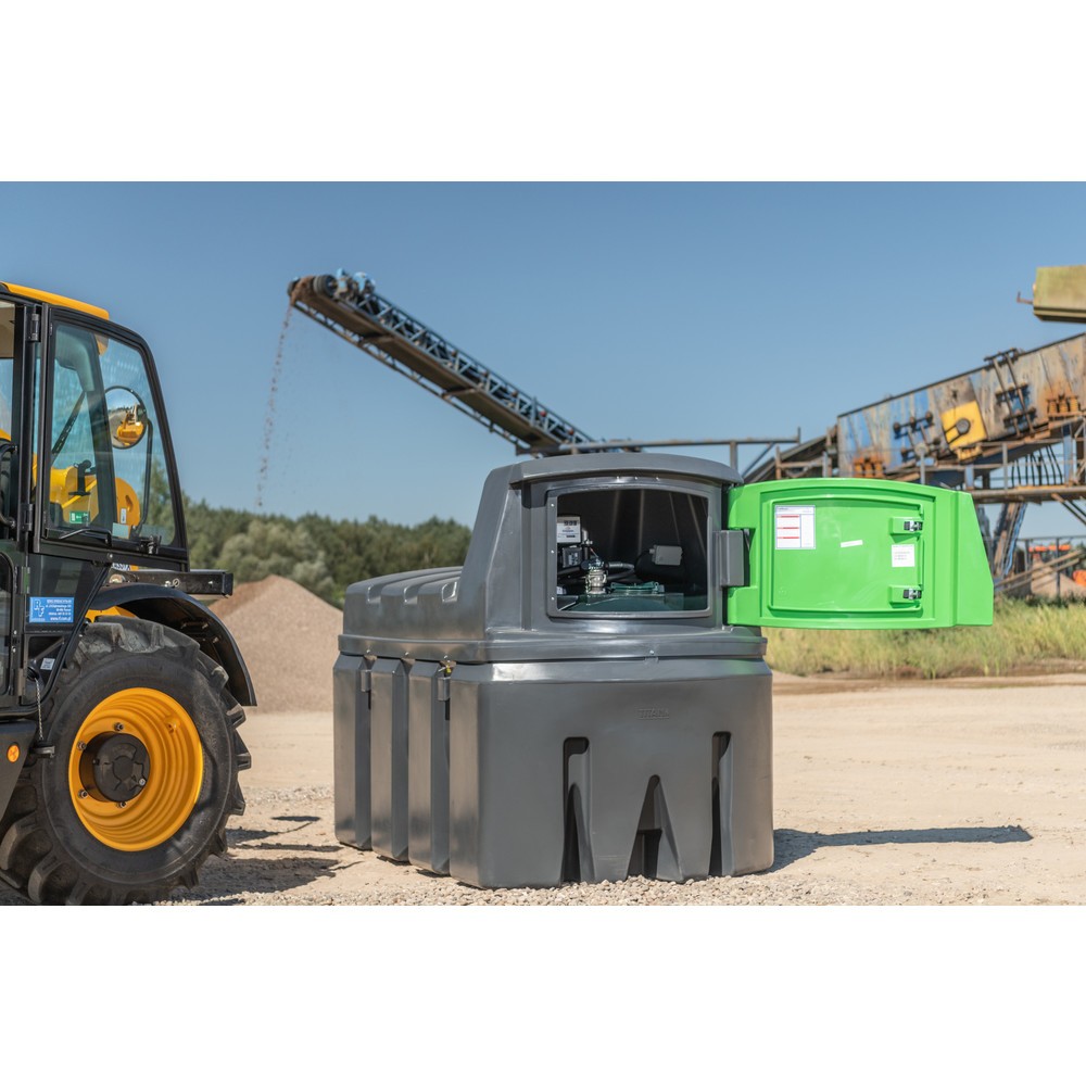 Diesel-Tankanlage mit 72-l/min-Pumpe, digitalem Zählwerk und Tanküberwachung in kompaktem Design für den Außeneinsatz