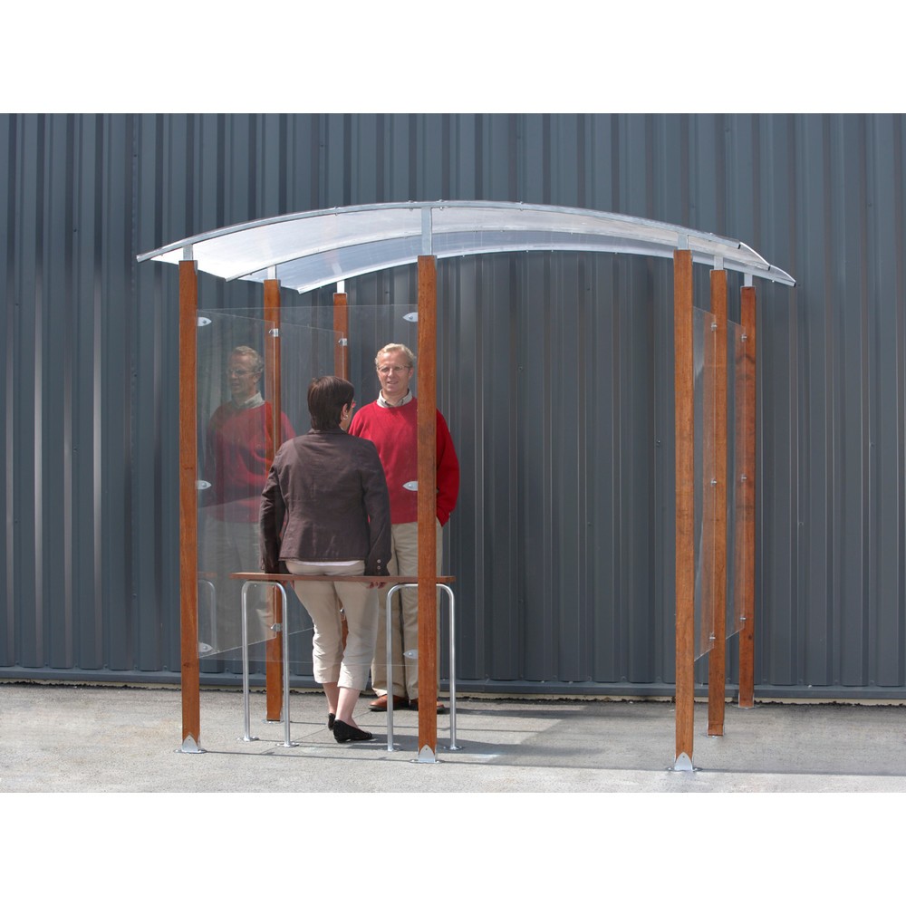 Für zusätzlichen Komfort ist der Raucher-Unterstand mit einer integrierten Stehbank ausgestattet.
