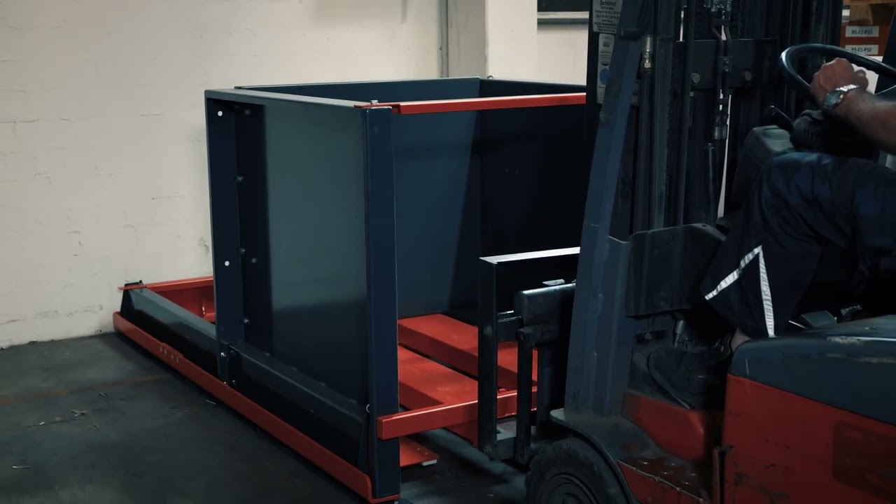 Die Paletten-Schiebevorrichtung benötigt keinen Stromanschluss und keine wartungsintensive Hydraulik. Ihr Herzstück ist der hochbelastbare, rollengelagerte Slider (Schiebeelement), der Höhendifferenzen zwischen Start- und Zielpalette einfach ausgleicht. Die beladene Palette wird mit Hilfe eines Flurförderzeugs auf das Schiebeelement in den Palettenwechsler gestellt. Direkt davor positionieren Sie die neue, leere Palette und schieben diese mit dem Flurförderzeug nach vorn. In Sekundenschnelle gleitet die Zielpalette unter das Ladegut, während die Ursprungspalette auf dem Slider durch die Öffnung der Rückwand rutscht. Nehmen Sie jetzt die gewechselte Palette aus dem Palettenwechsler, während das Schiebeelement selbsttätig zurückgleitet. Und schon steht der Palettenwechsler für das nächste Umpalettieren bereit. Auf diese Weise können mehrere 100 Paletten pro Tag gewechselt werden.