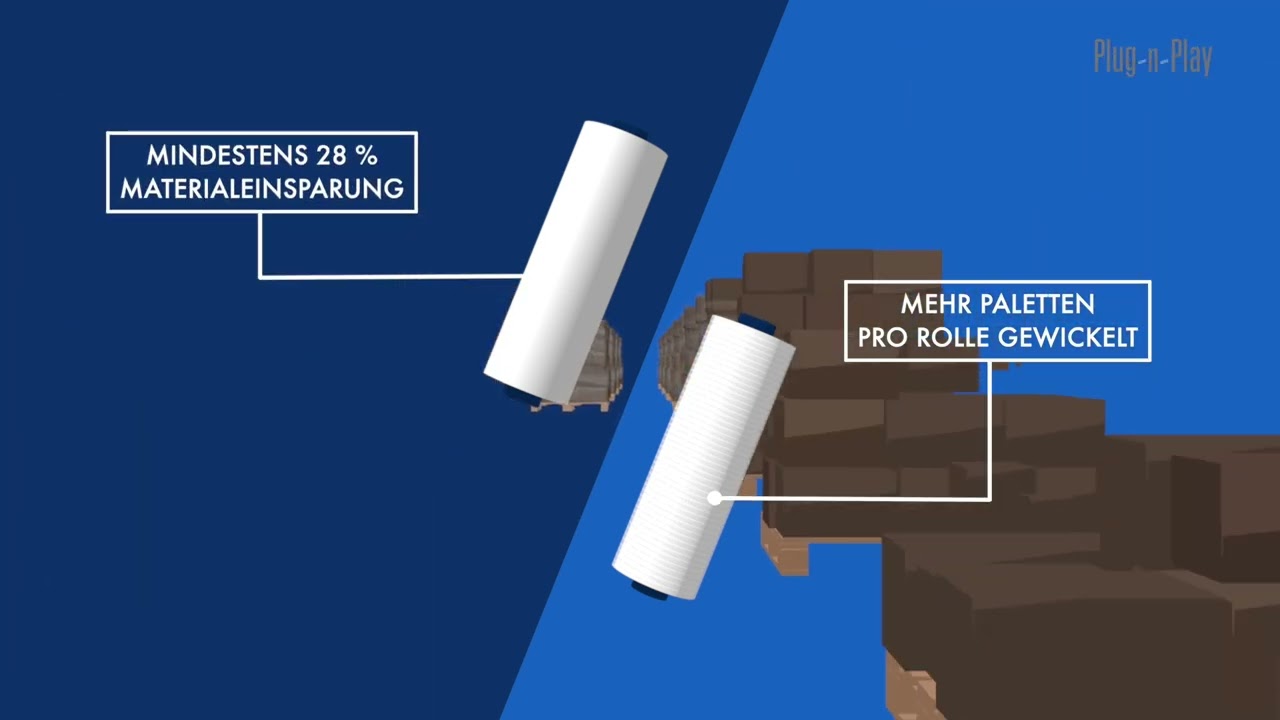 - Bei gleicher Paletten-Stabilität: Materialeinsparung von ca. 25 % im Vergleich zu herkömmlichen Stretchfolien