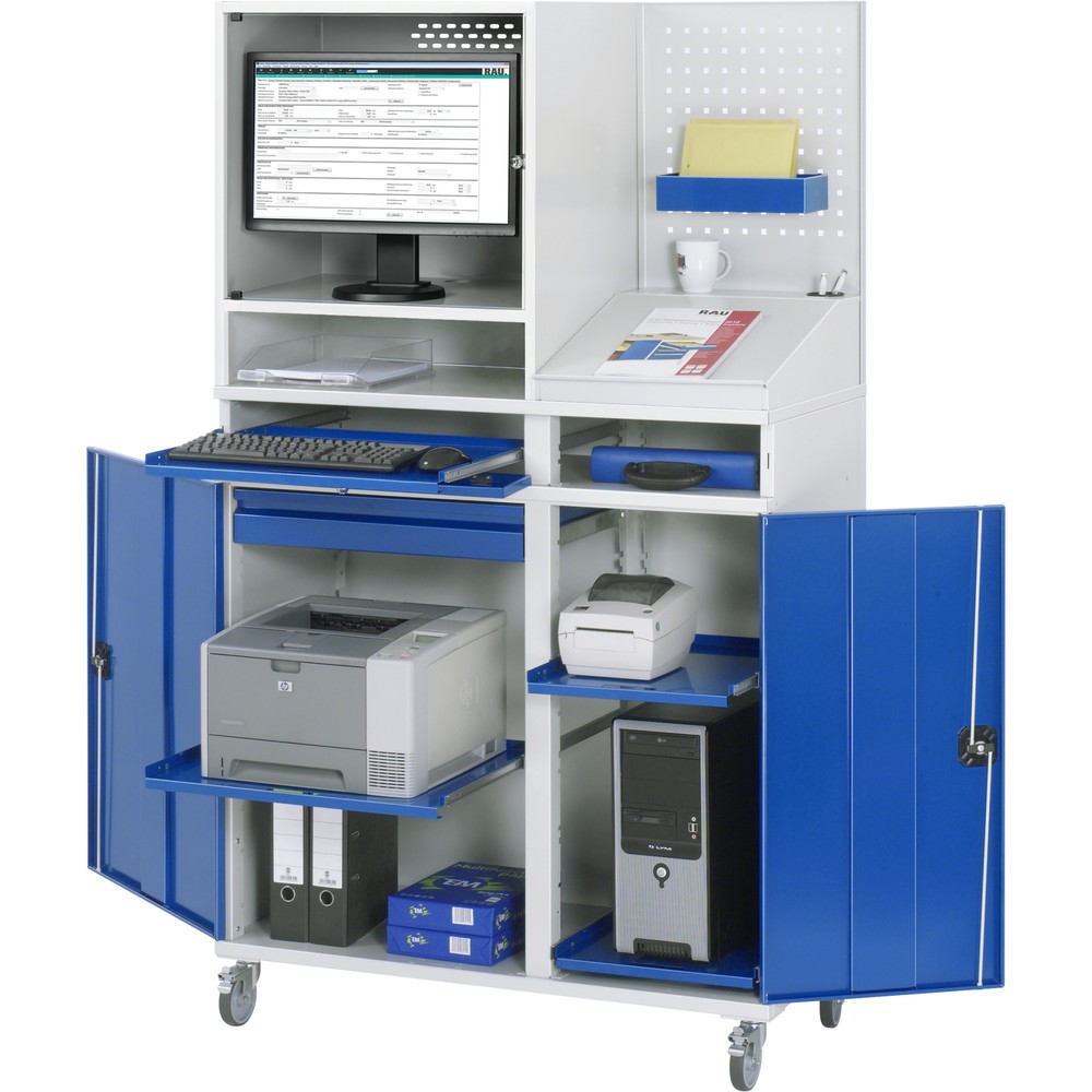 RAU Computer-Schrank, Tastaturauszug, Flügeltür, Lochplattenrückwand, Schubladen, stationär