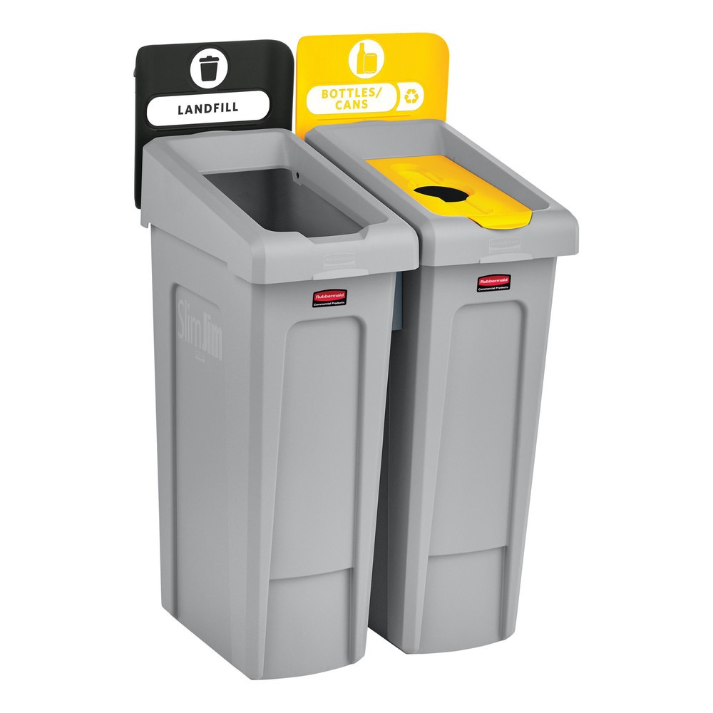 Rubbermaid® Slim Jim Recycling-Station Starter-Set, mit Wertstoffsammler 87 Liter, mit offenem Deckel, mit Einrastverbinder