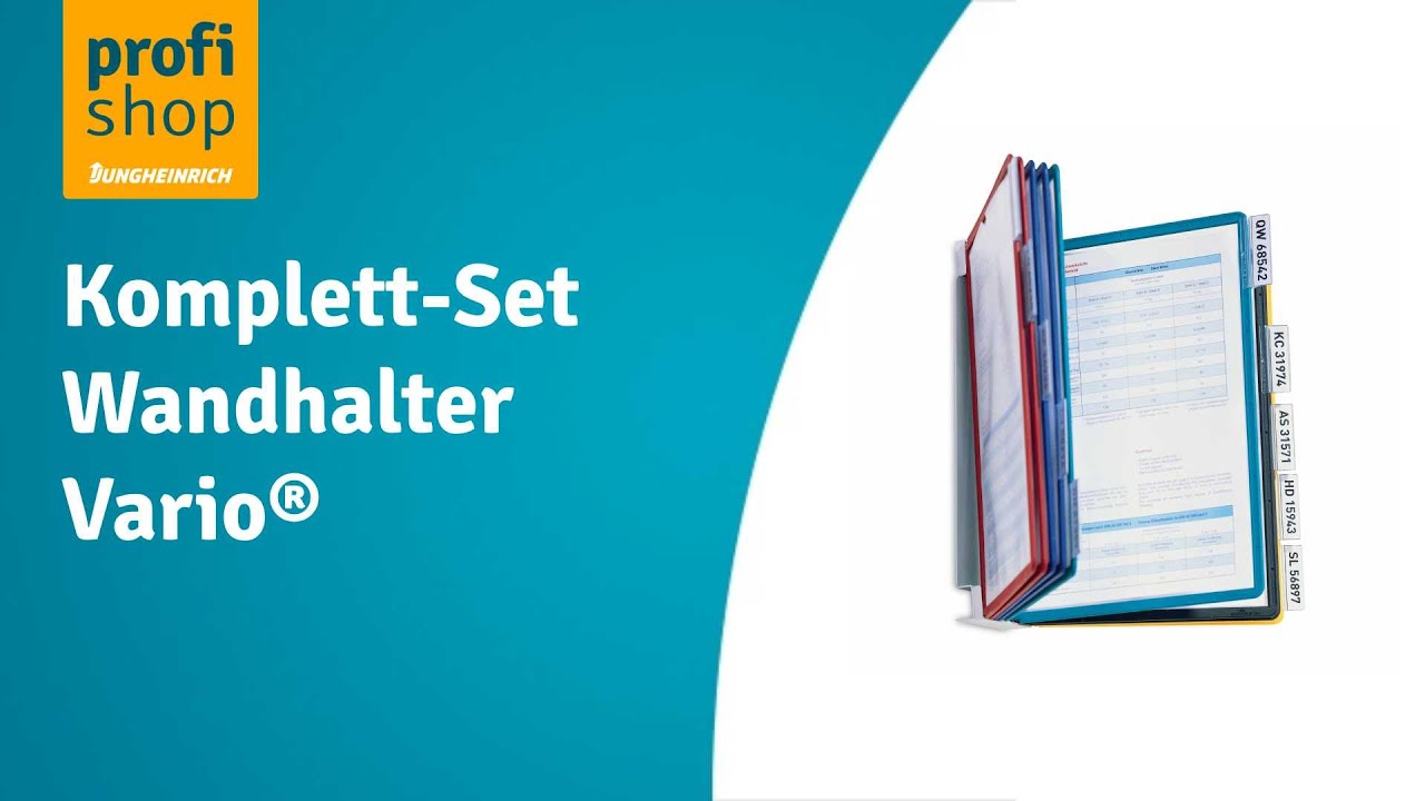 Das Sichttafel-System mit Wandhalter ermöglicht Ihnen, Informationsblätter übersichtlich zu präsentieren. Sie erhalten das Komplett-Set Vario® mit verschiedenfarbigen Sichttafeln für eine einfache Strukturierung der Informationen.