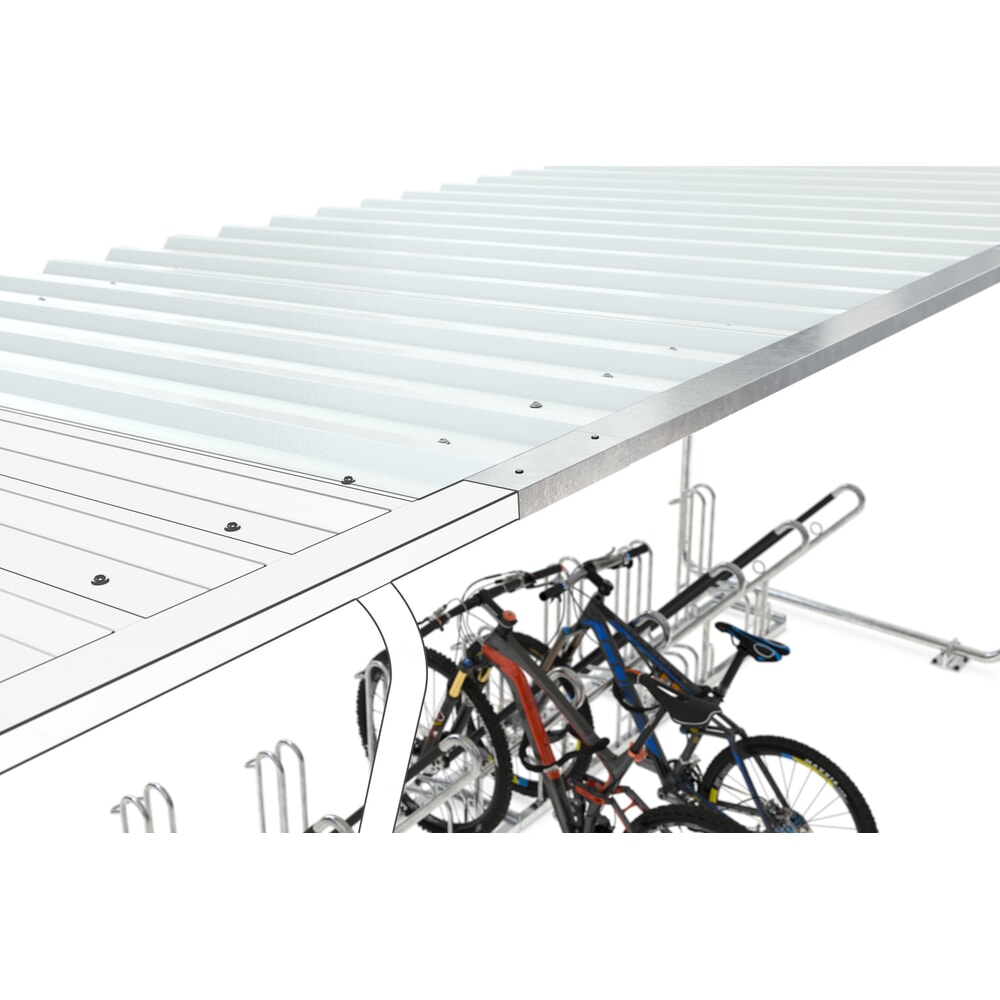 Um Ihre Fahrräder noch besser vor Wind und Niederschlägen zu schützen, finden Sie in unserem Sortiment optionales Zubehör wie Seitenwände aus Polyester oder eine Rückwand aus Trapezblech.