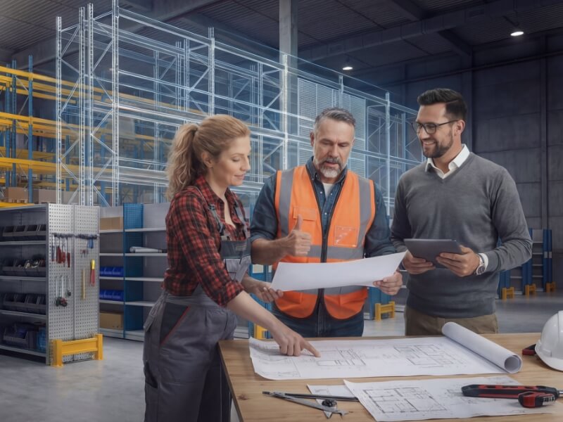 In der Planung wählen wir passende Regalsysteme, entwickeln individuelle Sonderlösungen und visualisieren Ihre zukünftige Arbeitsumgebung in 2D oder 3D.